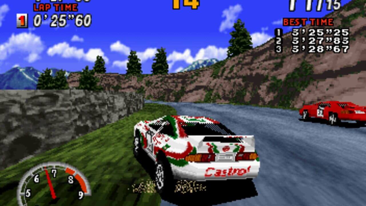 Sega Rally Championship is a 1994 arcade racing game developed by AM5 on the Sega Model 2 board. The unique selling point of Sega Rally was the ability to drive on different surfaces (including asphalt, gravel and mud), with different friction properties, with the car’s handling changing accordingly. As the first racing game to incorporate this feature, Sega Rally is considered to be one of the milestones in the evolution of the racing game genre.